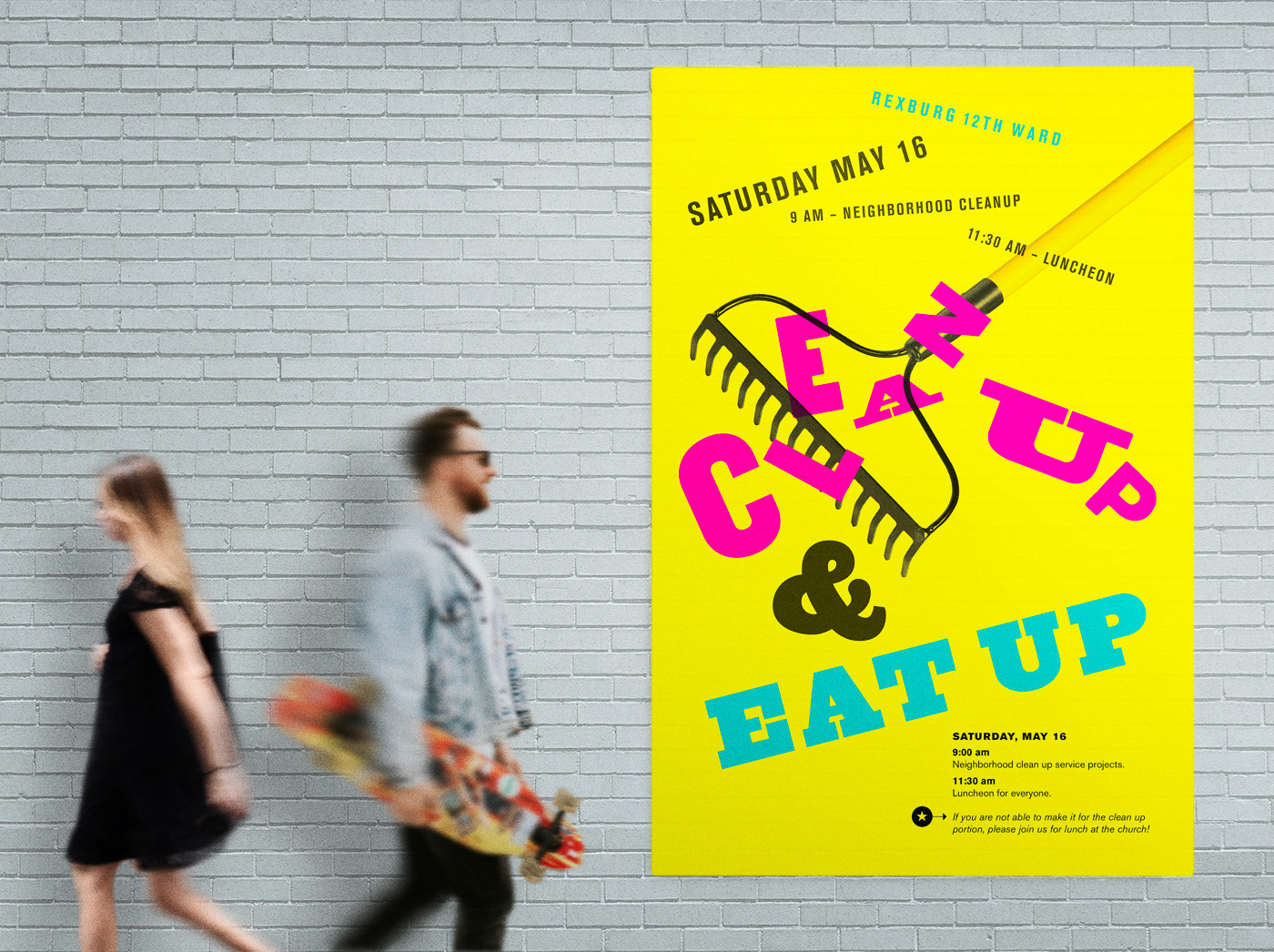 Designed a poster to promote a neighborhood service project organized by the local ward of The Church of Jesus Christ of Latter-day Saints.